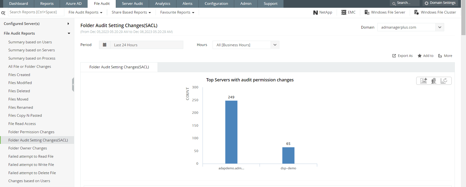 Figure 6: A security manager can also view reports on file permission changes and file audit changes.