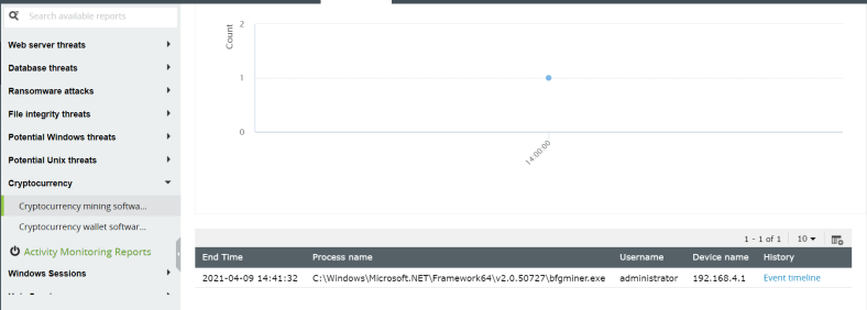 Figure 12: Built-in correlation capabilities in Log360 can detect presence of cryptomining software.