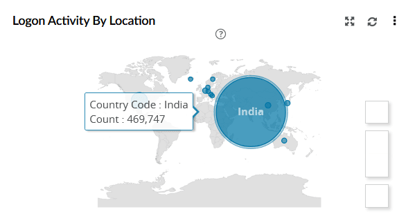 | Logon Activity by Location | Displays a world map of user login activity by country, highlighting the geographic distribution of sign-ins. Each circle corresponds to the logon count. |