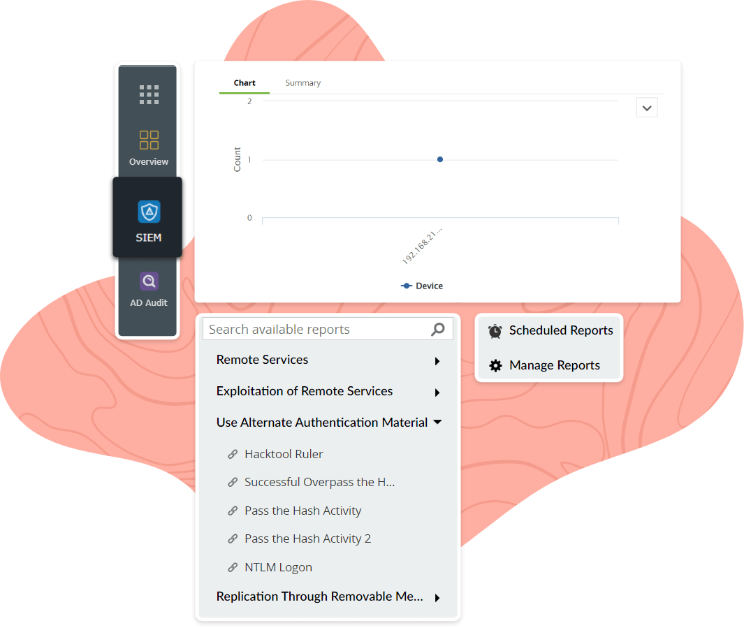 Log360's SIEM capability helps gain complete visibility into what's happening on your network to quickly alleviate various cyber attacks including lateral movement.