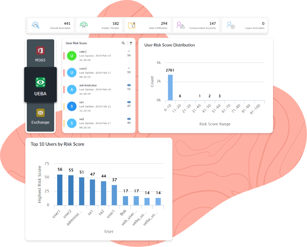 Log360's powerful machine-learning based user and entity behavior analytics (UEBA) module and signature-based attack detection system helps you to quickly hunt lateral movement techniques.
