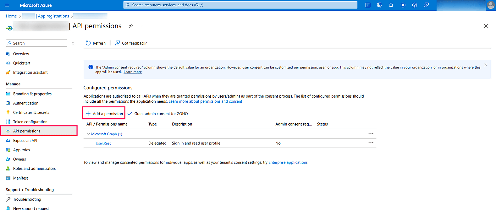 - Search Mail and select the permission Mail.Send. Click Add permissions.