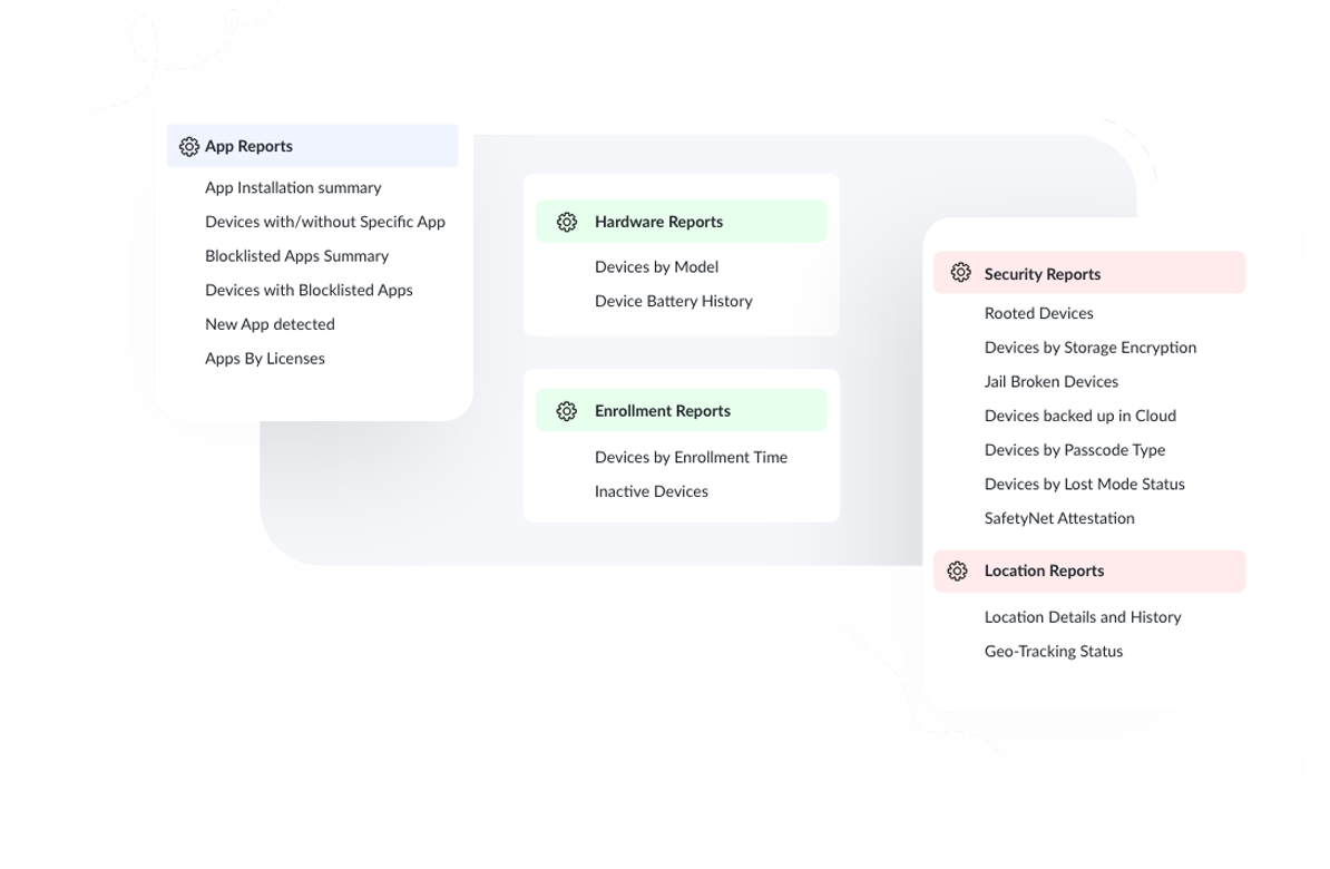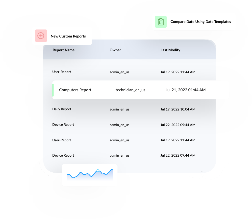 Generate instant reports on IT management, security processes, and device details to ensure your IT ecosystem is running without any glitches.