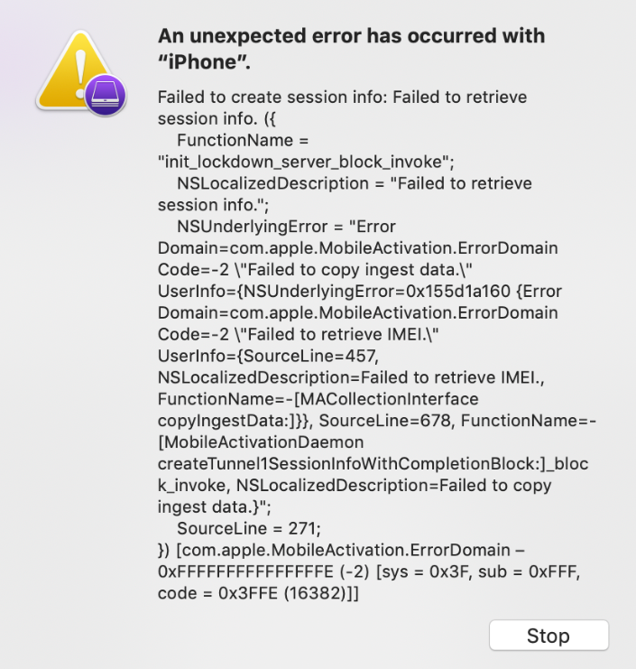 This error occurs on Wi-fi only iPad where IMEI is not present in device.