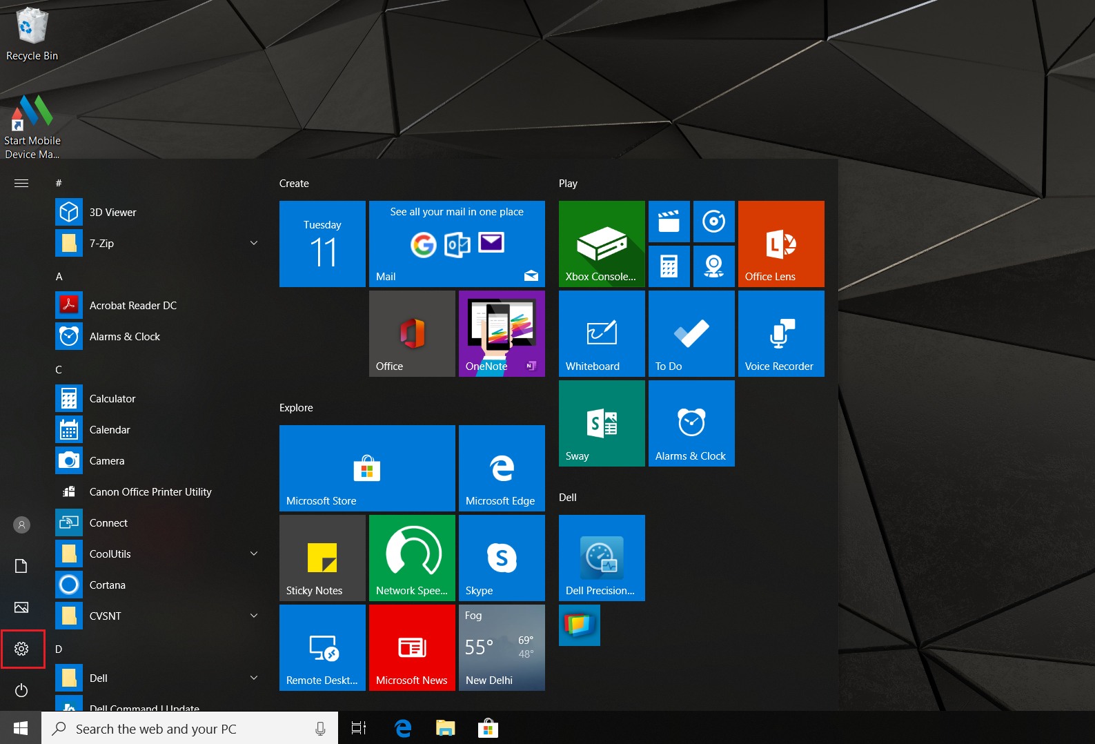 - Select Settings icon on the managed mobile device.
