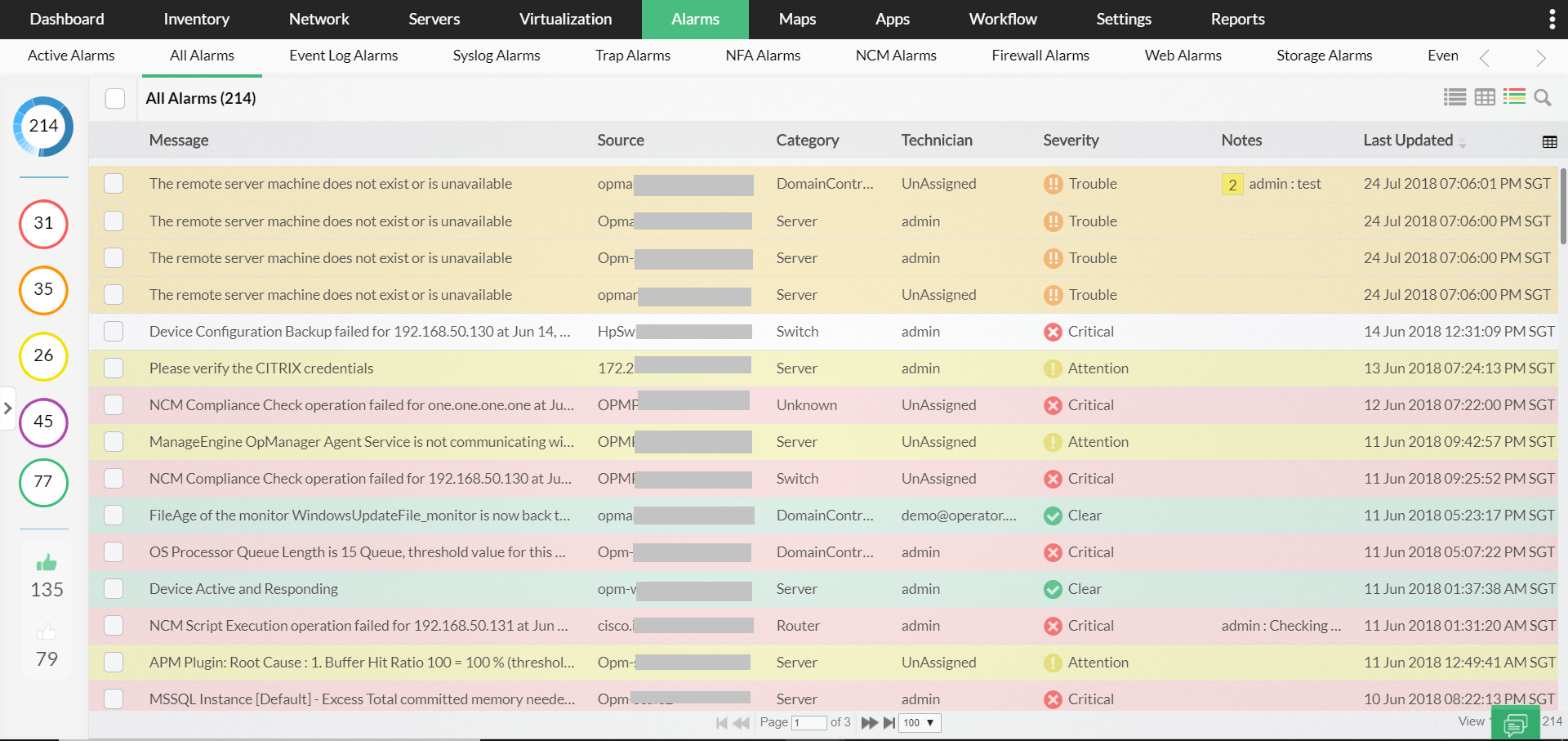 - Multi-level thresholds: OpManager offers multi-level thresholds with color codes, so you can identify show-stopping network faults and promptly take action.