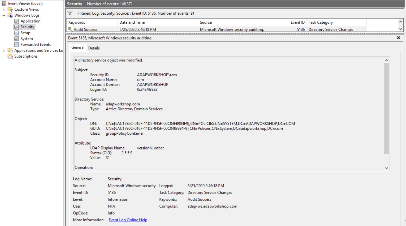 Attackers looking to compromise an AD environment may attempt to target GPOs and make malicious changes. Auditing changes to GPOs will let an administrator know exactly what change was made, when it was made, who made the change, and where the change was made. This will harden the security of the AD environment and also enable the administrator to revert any unauthorized changes.