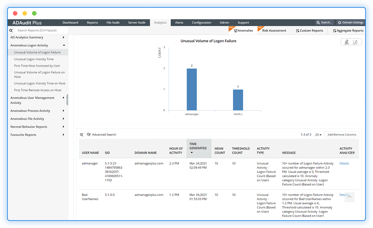 Quickly identify critical events such as a high volume of failed login attempts, accesses to critical servers after business hours, and more.