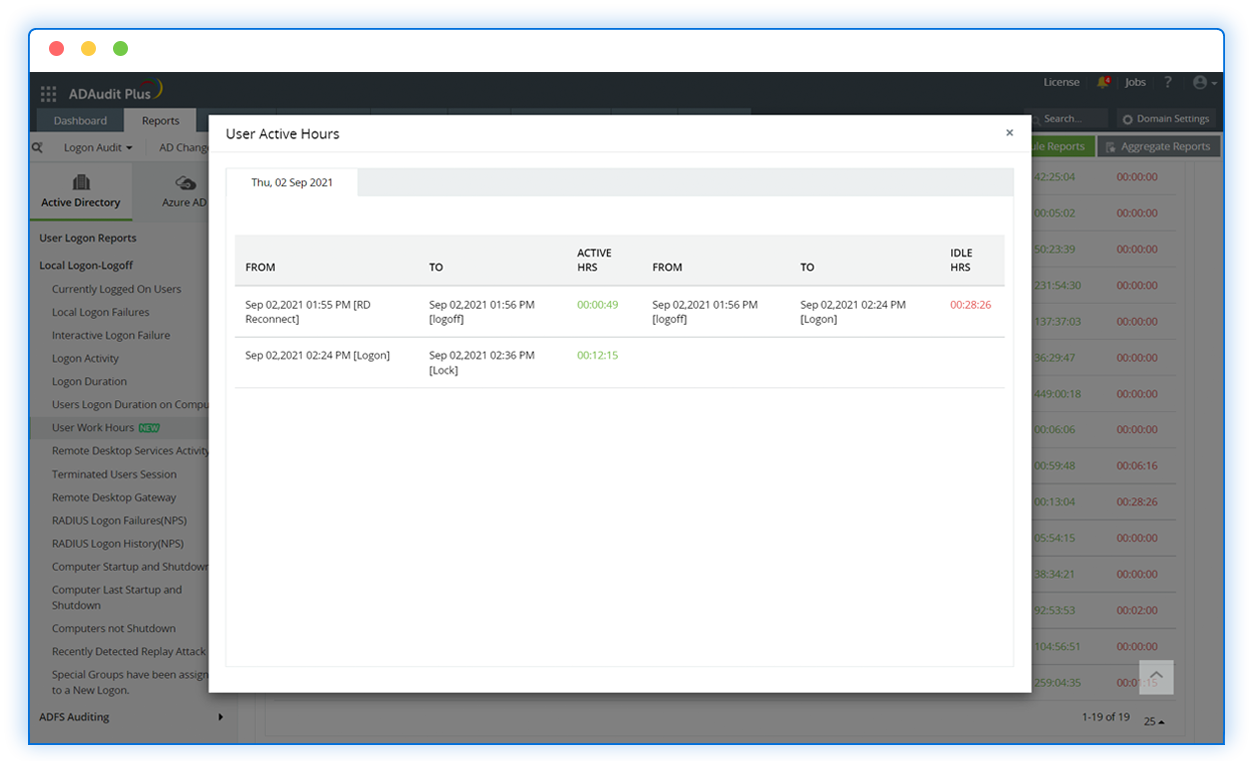 Keep accurate records of the first login and last logout times of your employees, and track their logon history and duration with detailed reports.