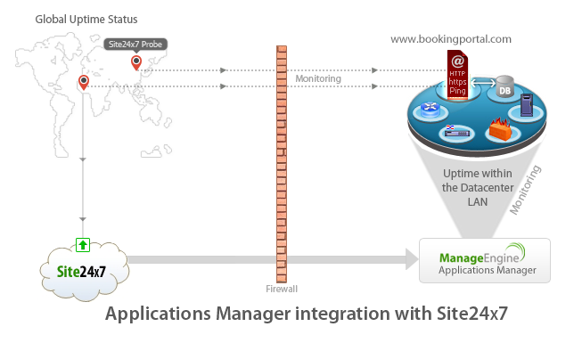 Such a scenario calls for a monitoring system that monitors from both within your corporate data center and from multiple external locations - exactly the way a visitor experiences your site. Applications Manager supports integration with Site24x7, the website monitoring service based on the SaaS model from ManageEngine.