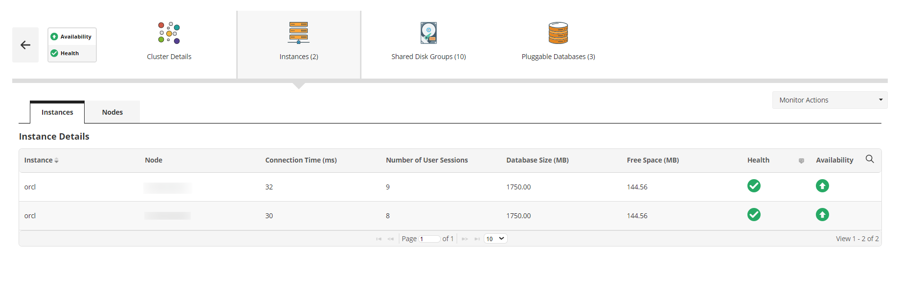In a RAC setup, there are multiple instances, each operating on a unique node (server) within the cluster. These instances collaborate to administer the shared database, ensuring enhanced availability, scalability, and load balancing. With Applications Manager, track the nodes in which these instances are running, get notified when database size grows beyond a reasonable limit or grows fast. You can also gauge the workload on your instances by tracking the number of user sessions.