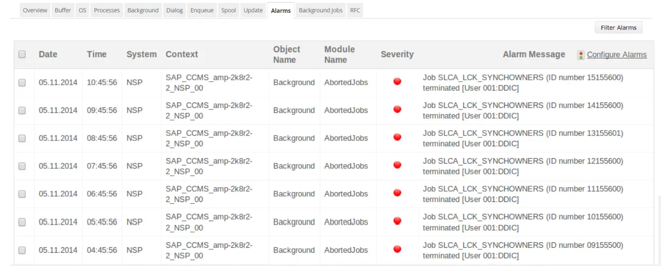 Our SAP system monitoring tool's fault management feature enables you to view and troubleshoot SAP system errors comprising of ABAP dumps, aborted Jobs, update errors and other syslog errors.