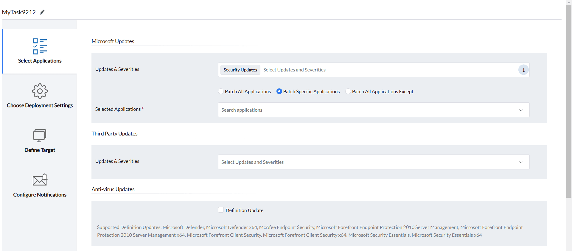 Similar to Microsoft Updates, you can also choose to Patch All Applications,Patch Specific Applications and Patch All Applications Except in this section.