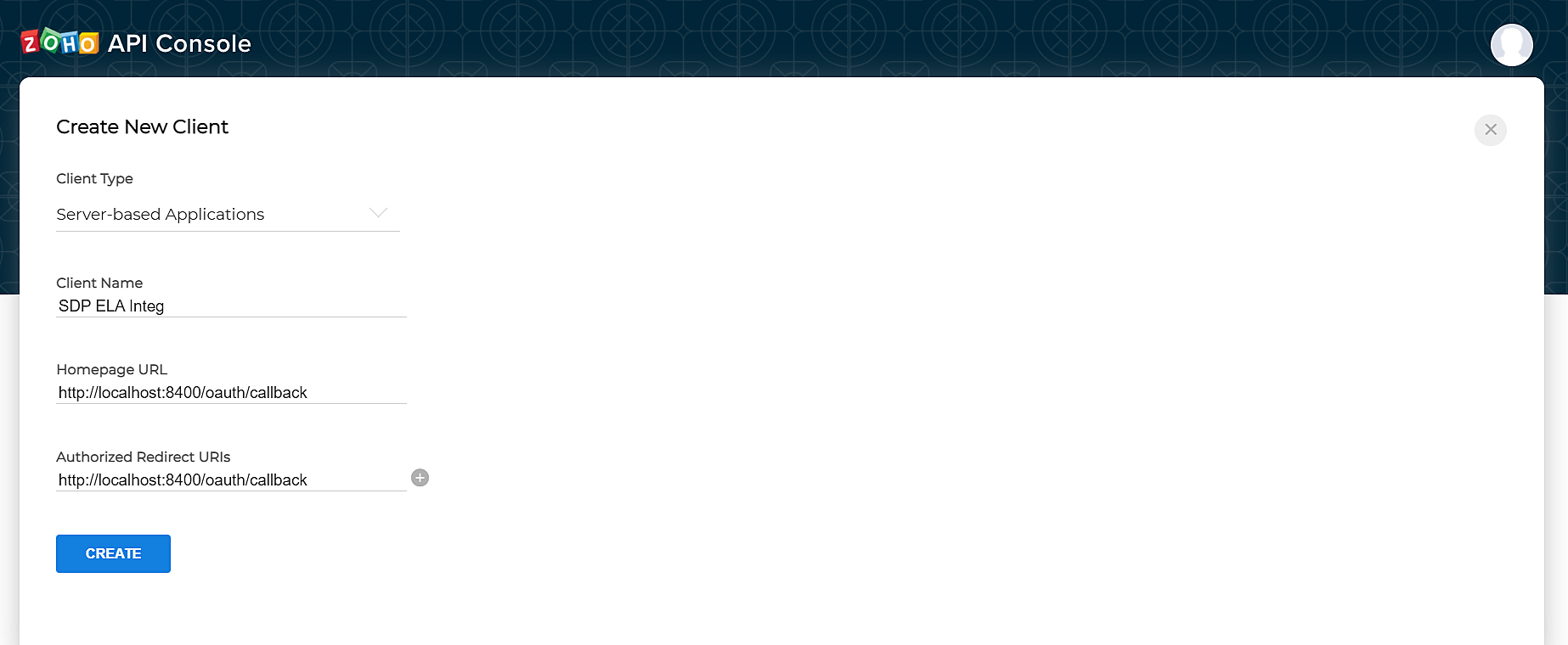 5. To create a new client, enter the required details. Enter the redirect URL as given in the EventLog Analyzer console and click Create.