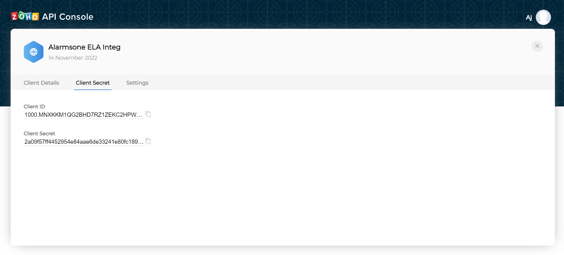 8. Copy the generated Client ID and Client Secret ID.