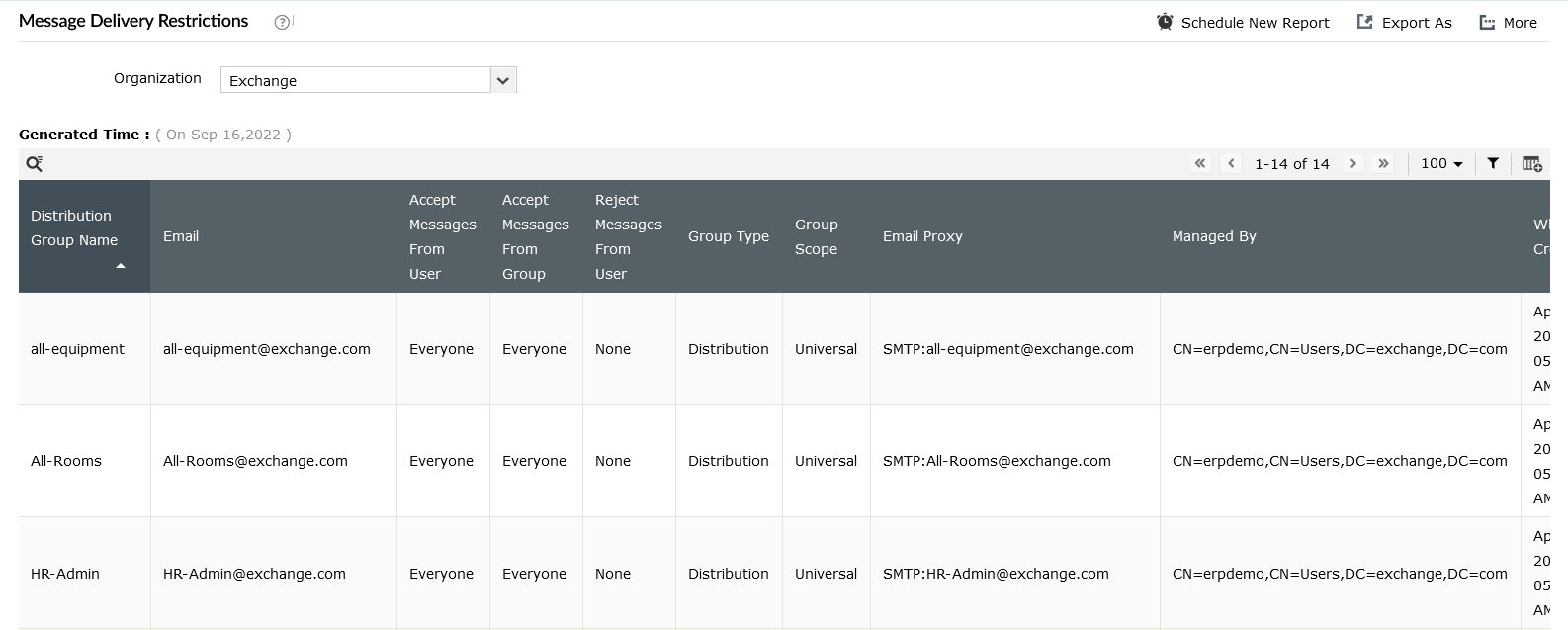 View the permissions for all the distribution groups in your Exchange organization using this report.