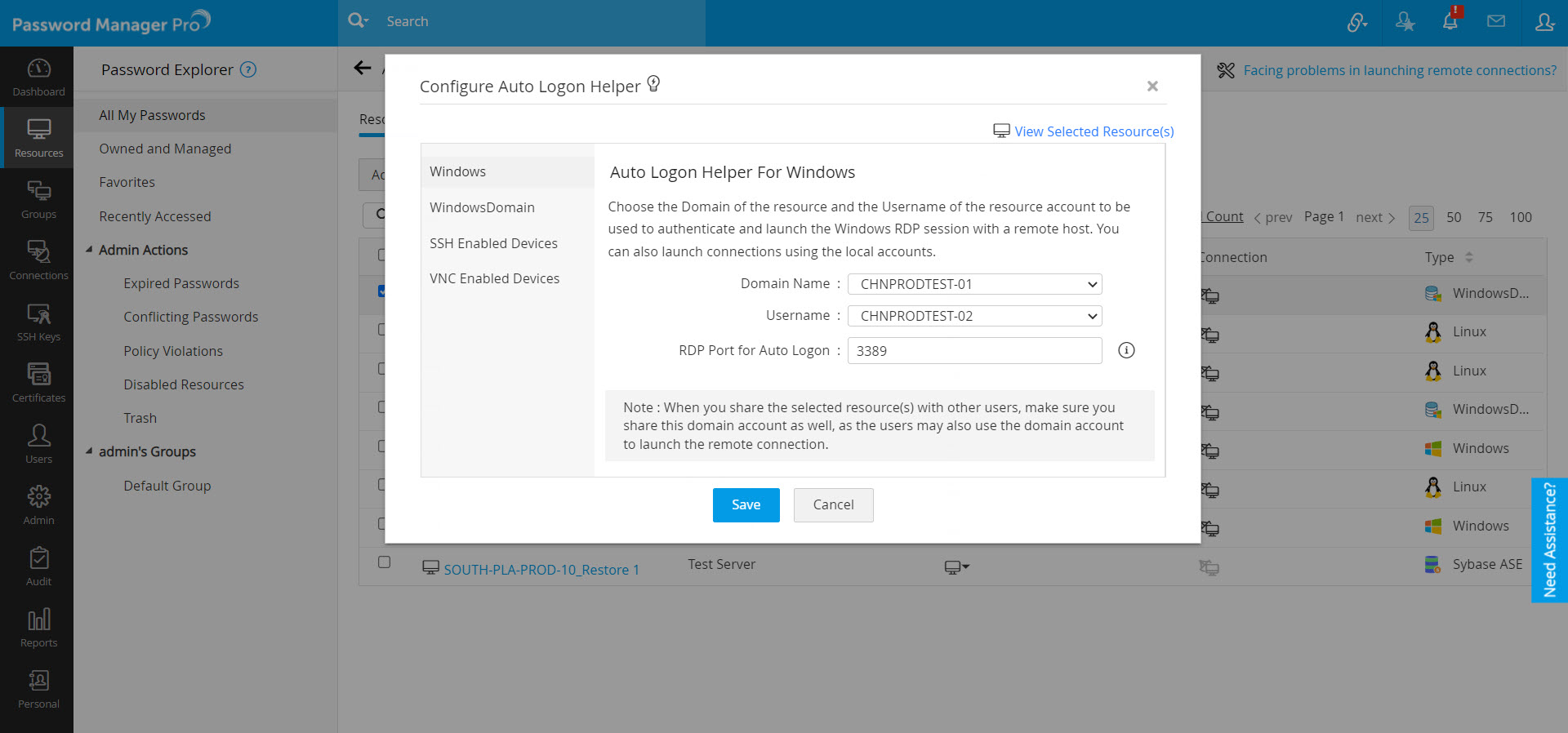 - All Windows systems can be automatically connected to an RDP session. To log into a Windows resource, you need to configure either a domain account or a local account that can be used by users to authenticate and launch a Windows RDP session with the remote host. Alternatively, an administrator can also allow users to launch RDP sessions using their AD account with which they have logged into the Password Manager Pro vault.