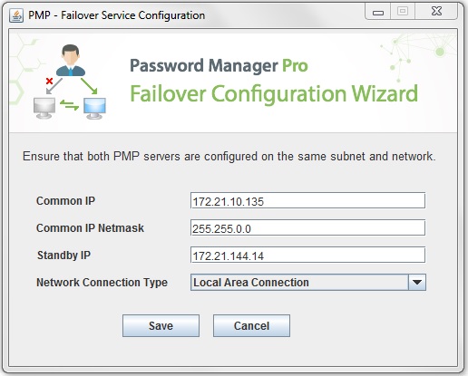 Note: Failover Service for Password Manager Pro allows configuration of a maximum of TWO instances of Password Manager Pro only.