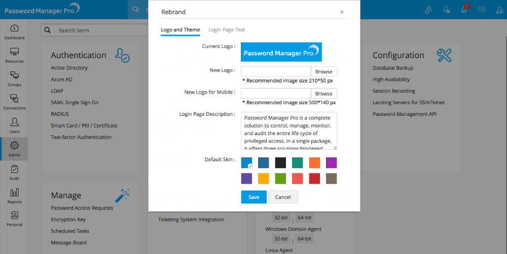 - Click Save. Password Manager Pro will appear with the rebranded look.