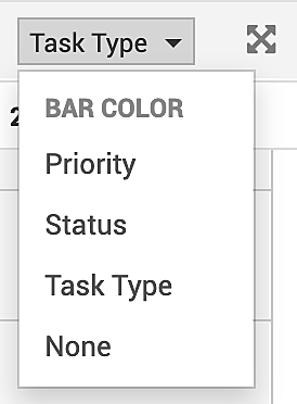 For better display and ease of access, the Resource Management section is color-coded by status, priority, and task type. Depending on your choice under Bar Color, the chart is displayed. The page legends list the type of color-coding used in the chart.