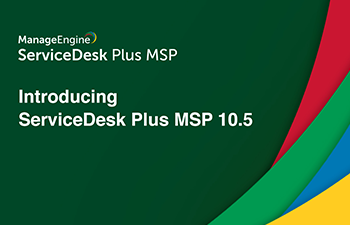 Learn about the various new features and enhancements in ServiceDesk Plus MSP 10.5. A refreshing new UI, along with features like Time Sheets, the MSP Business Dashboard, and field service management, help you take your business to the next level and provide an enhanced service experience to your customers.