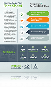 Know more about ServiceDesk Plus - Features offered by ServiceDesk Plus, interesting facts and figures, our worldwide customers, and other useful information.